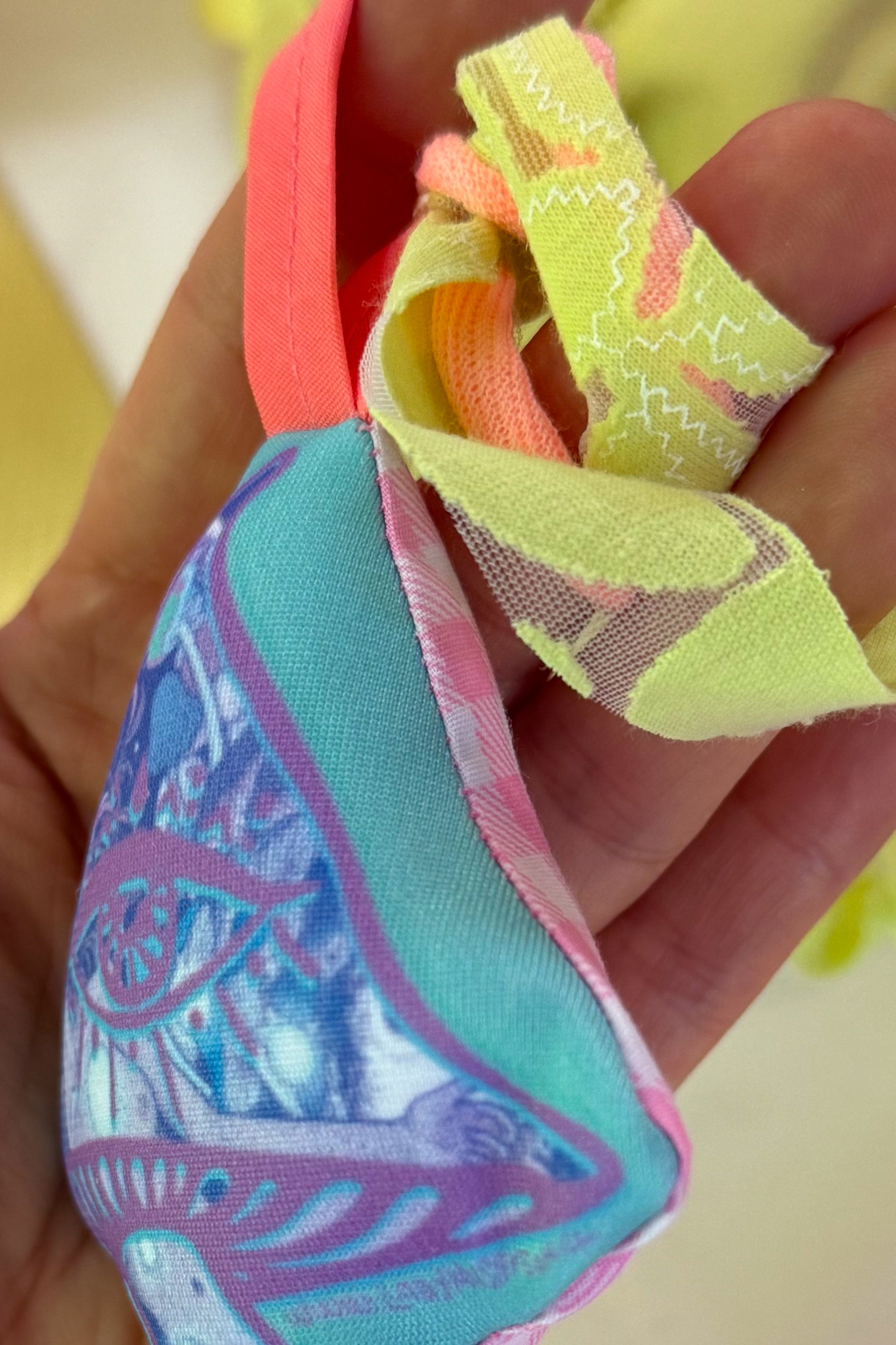 Como el hilado de estas telas es más resistente, puedes lavar dentro de una máquina siempre y cuando sea dentro de una funda de tela, anudas y listo.