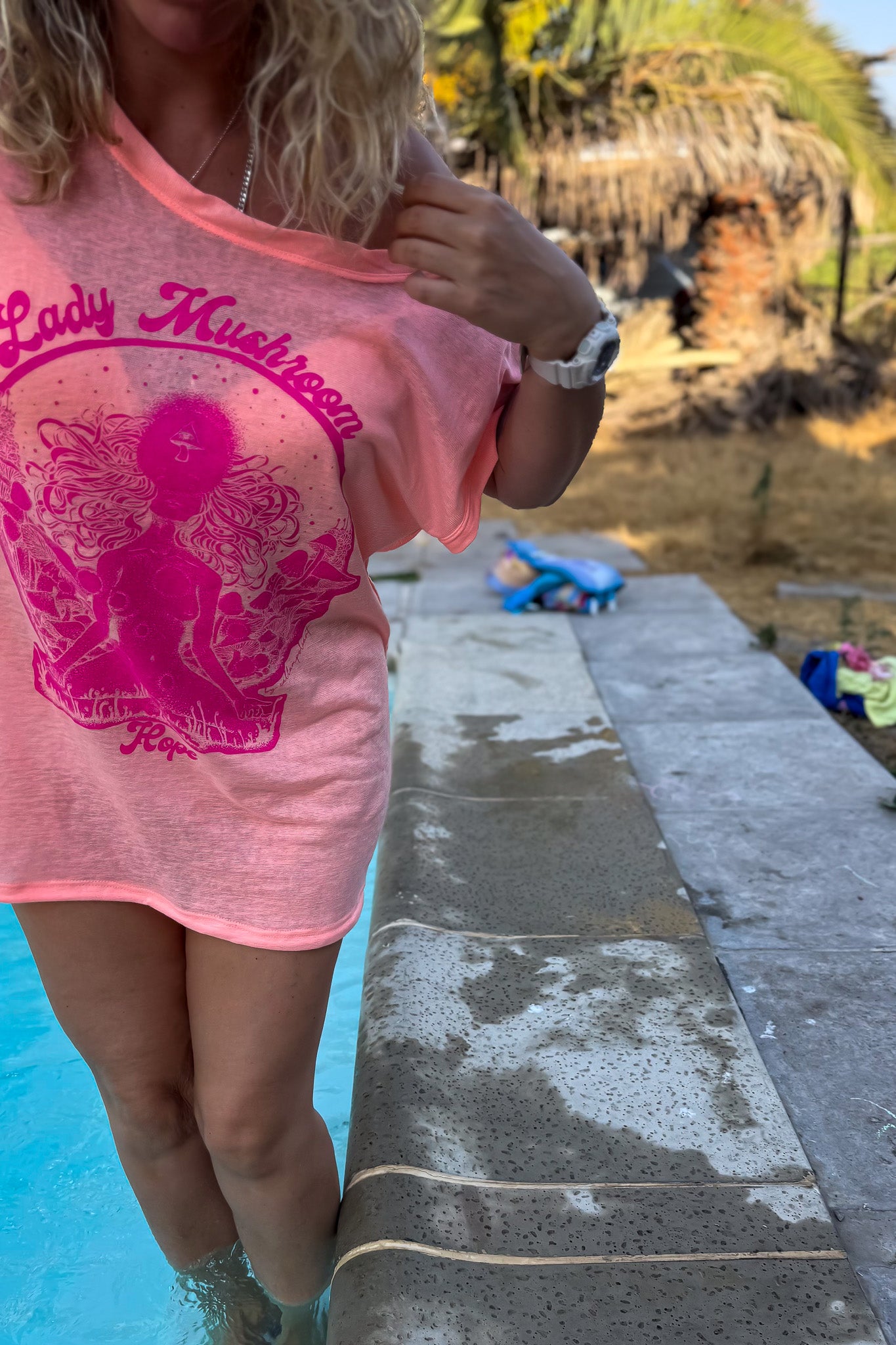 Planchar siempre con un paño de algodón arriba de tu prenda Lady Mushroom para que no quede marca de plancha o se queme.