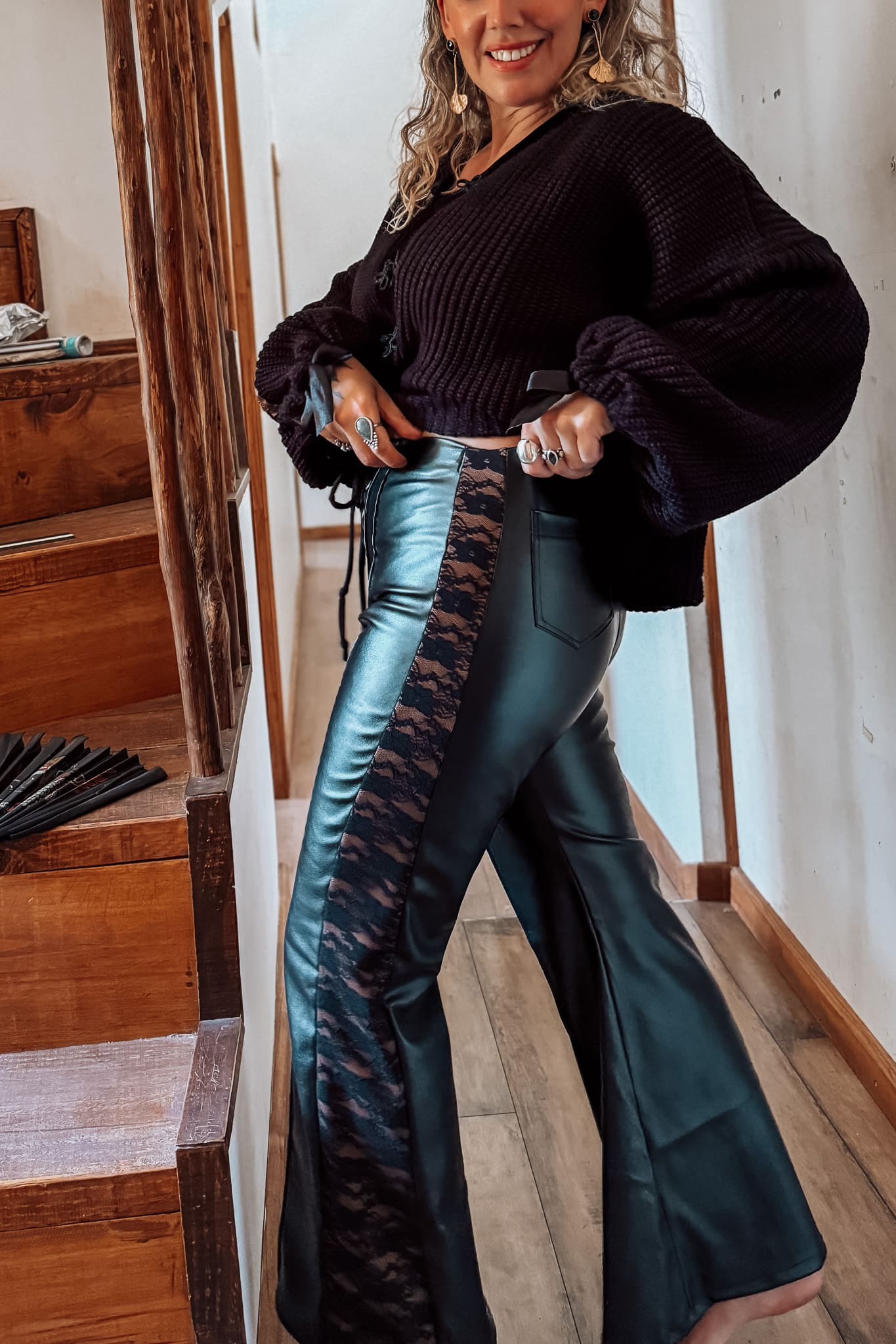 – Silueta tipo palazzo, fluida y favorecedora.